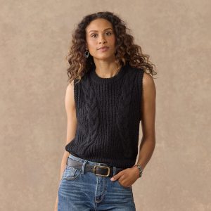 The loftiest combination of chunky rib knit and top applied cable stitch makes our sweater vest’s contouring so flattering. With rib trim. So versatile. wear on its own or with a layer underneath. Acrylic/nylon/polyester. Hand wash. Imported. Exclusive. Sizes XXS (00). XS (0–2). S (4–6). M (8–10). L (12–14). XL (16–18). Approx. 18l.