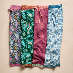 Perfectly comfortable for lounging. yet pretty enough to wear out on the town. Relaxed fit. drawstring pants in a vibrant print. Cotton. Machine wash. Imported. Exclusive. Sizes XS (0-2). S (4-6). M (8-10). L (12-14). XL (16-18). 23 inseam.