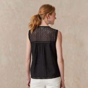 Feminine and textured. our special button down shell is a classic elevated. full of beautiful details with lace yoke. unique trim detail at the center front placket and shirring at the back. Cotton. Machine wash. Imported. Exclusive. Sizes XS (0–2). S (4–6). M (8–10). L (12–14). XL (16–18). XXL (20–22). Approx. 24l.