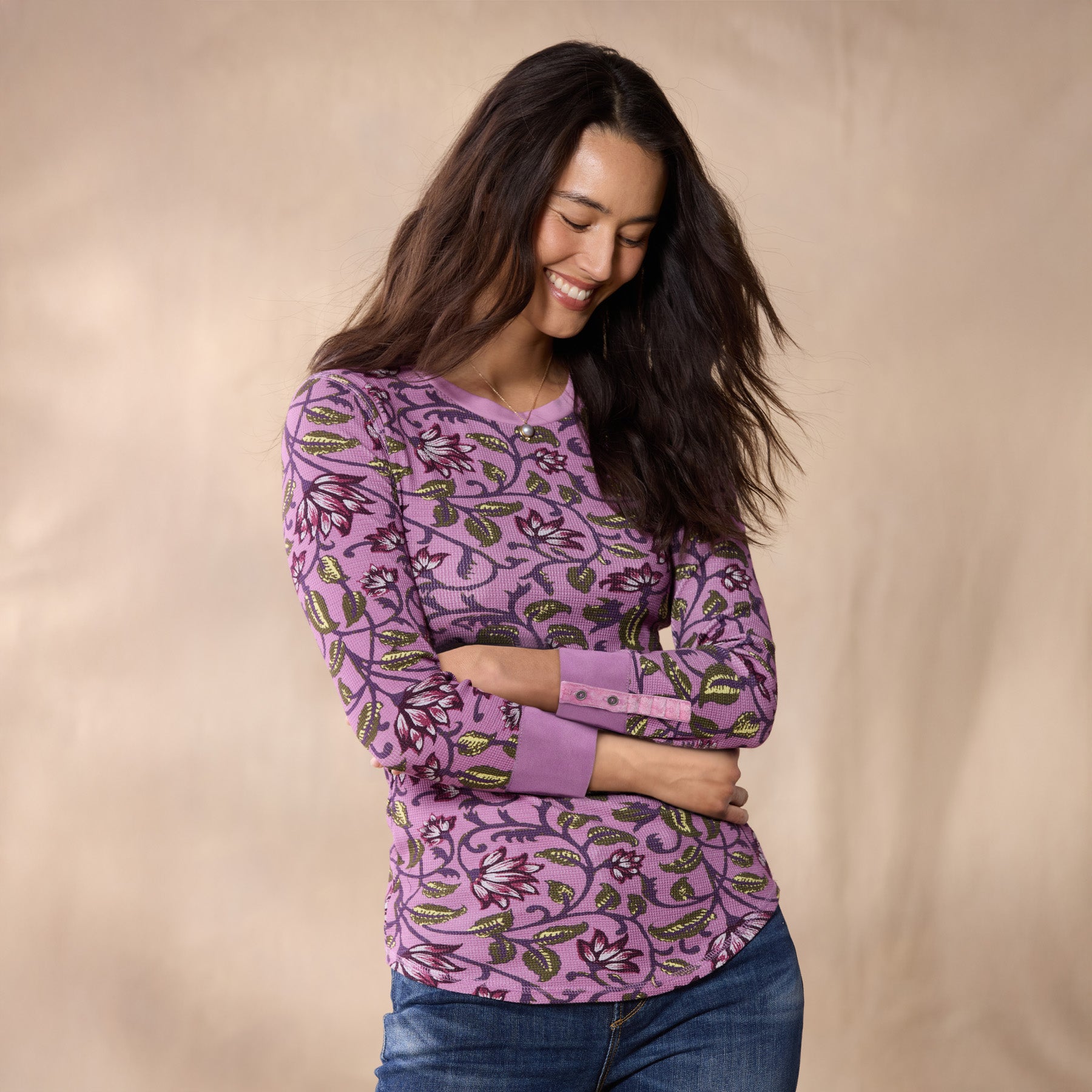 Our Sausalito is an update to a Sundance favorite—a cozy crewneck thermal in the loveliest floral print! Three-quarter sleeves with rib trim at the cuffs and neckline. Cotton/spandex. Machine wash. Imported. Exclusive. Sizes XS (0–2). S (4–6). M (8–10). L (12–14). XL (16–18). XXL (20–22). Approx. 25.5l.